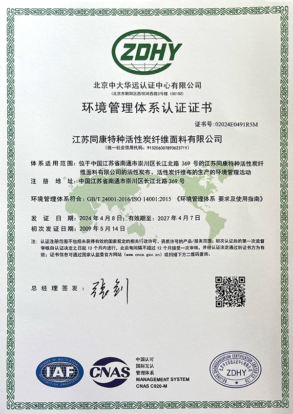 江蘇同康特種活性炭纖維面料有限公司座落在江海明珠的窗口,民族工業的發祥地,省級經濟開發區——南通港閘經濟開發區,沈海高速、寧通高速貫穿而過交通十分便捷,公司占地面積4.5萬平方米,建筑面積2.8萬平方米,固定資產8000多萬元。同康公司是專業生產活性炭纖維的企業,公司擁有國內特闊幅大型連續式活性炭纖維生產線,可生產1.5米幅寬的活性炭纖維系列產品。有寬幅拉幅定型機、多功能層壓織物復合機、連續式活性炭纖維靜電植絨生產線及多功能復合材料生產線等設備...