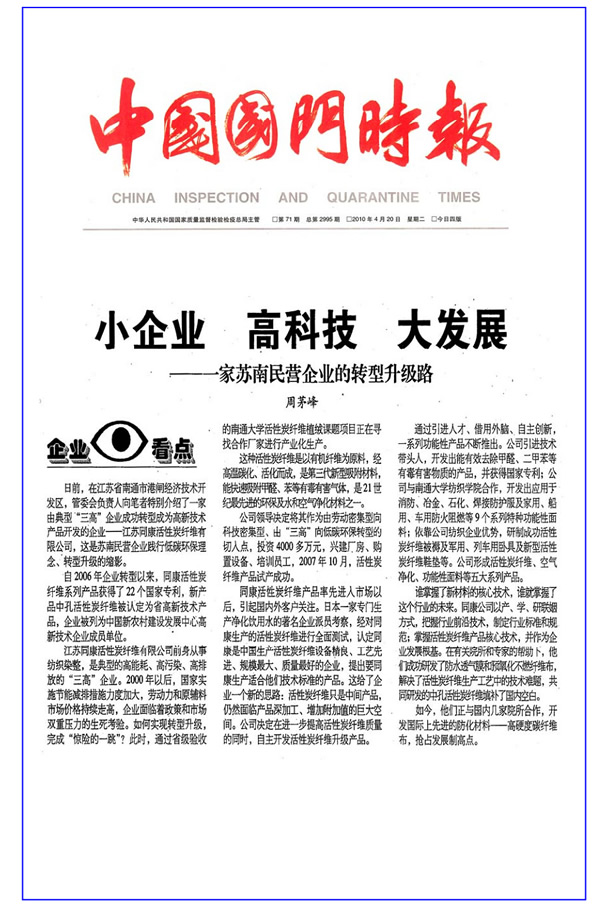 中國國門時(shí)報(bào)——小企業(yè)、高科技、大發(fā)展“一家蘇南民營企業(yè)的轉(zhuǎn)型升級路”