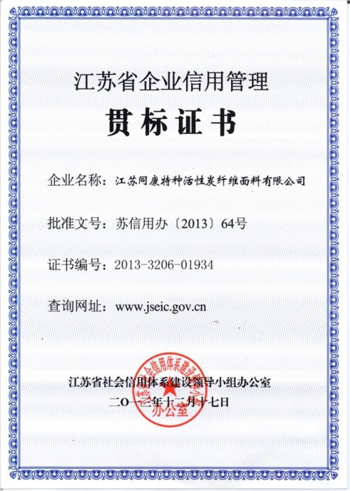 近日,同康公司通過江蘇省社會信用體系建設(shè)領(lǐng)導(dǎo)小組辦公室嚴(yán)格的審核評定,榮獲“江蘇省企業(yè)信用管理貫標(biāo)企業(yè)”榮譽(yù)。